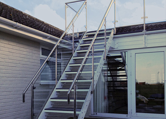 We can supply simple Juliet balconies through to large terraced areas complete with glass or conventional steel balustrades to suit your needs. Stair casing and handrails, access stairs and fire escapes, fencing or gates (powder coat finished, galvanised or both) can be designed for you or from drawings supplied.